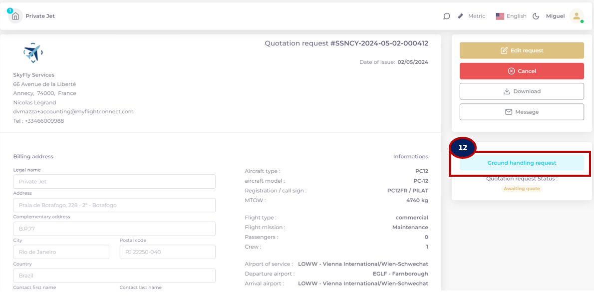 For the Customer, it is no longer possible to add items to the same quote request. A new quote request will be opened and submitted for the same flight.