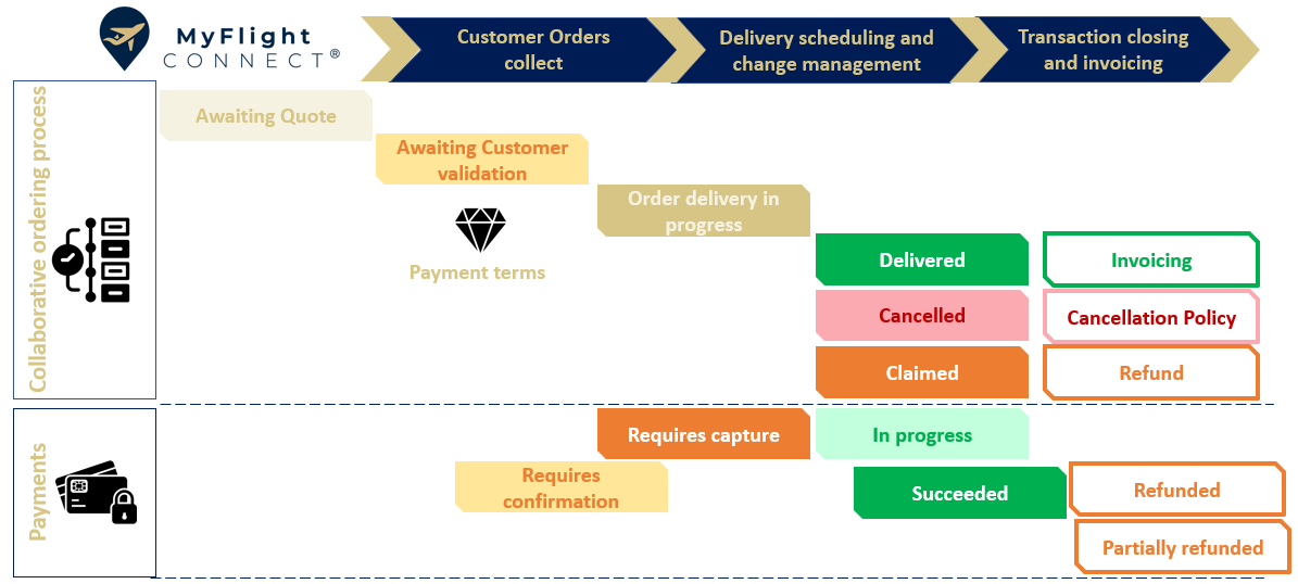 The payment workflow will start from the status “Order delivery in progress” if the payment term is different from “Bank transfer or contract” that applies for Offline payments (out of Stripe).