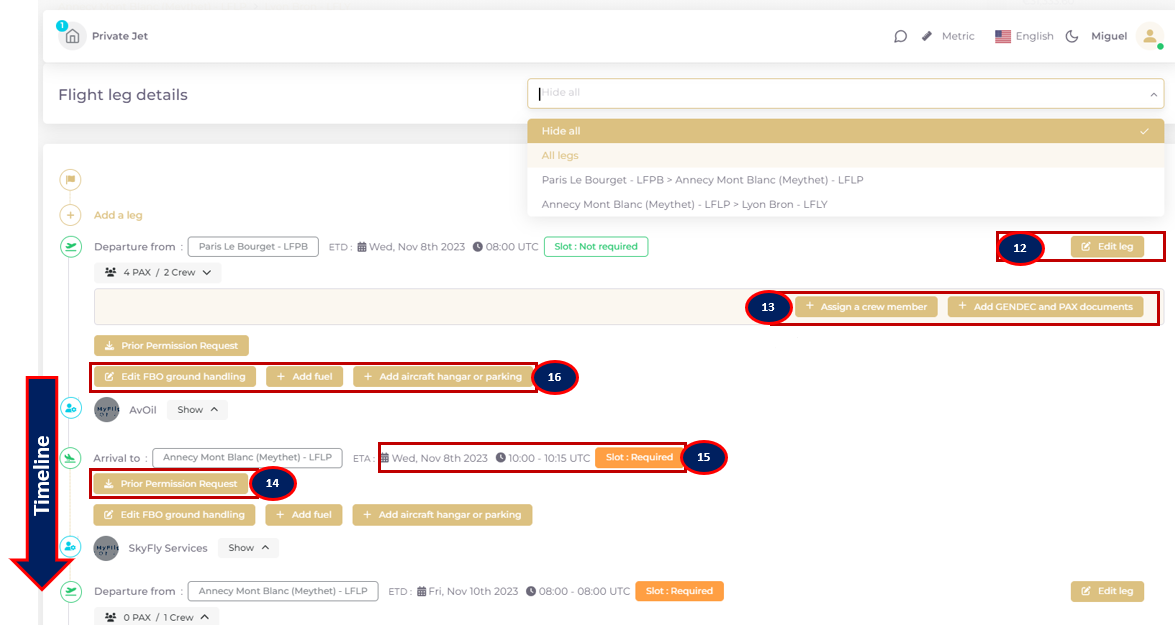 Block 15): The Slot assignment process is accessible from the timeline, click to open. Go to the following link to learn more about slot process : https://helpcenter-sellers.myflightconnect.com/flights/slot-process-prior-permission-request-for-fbo