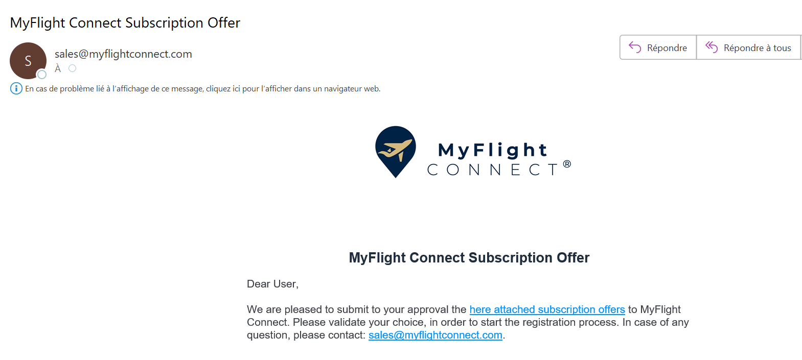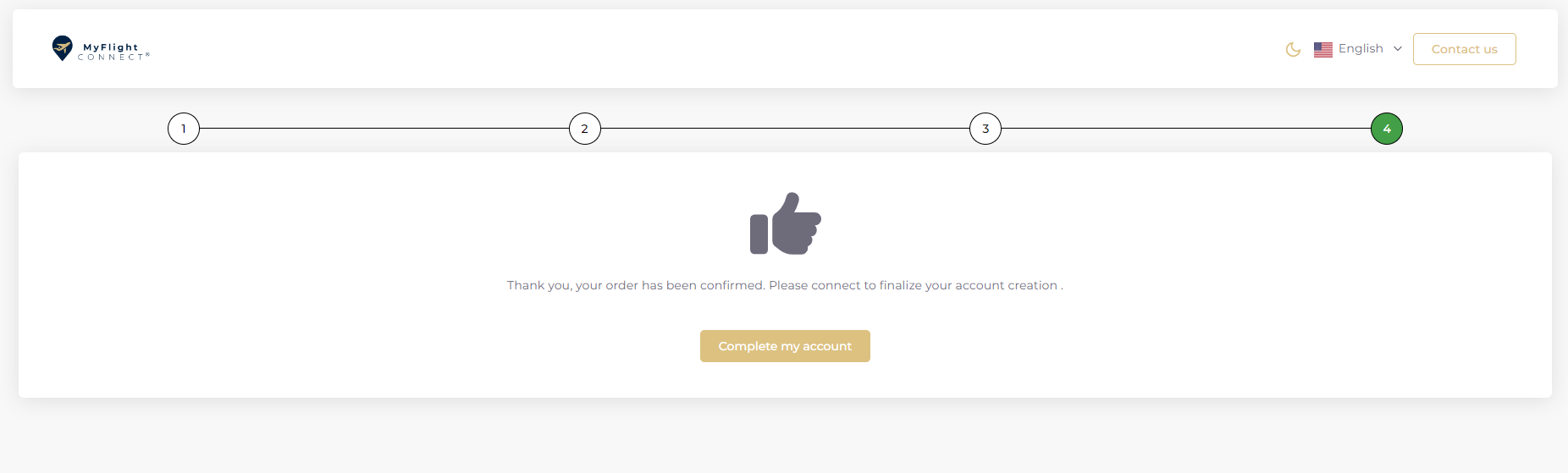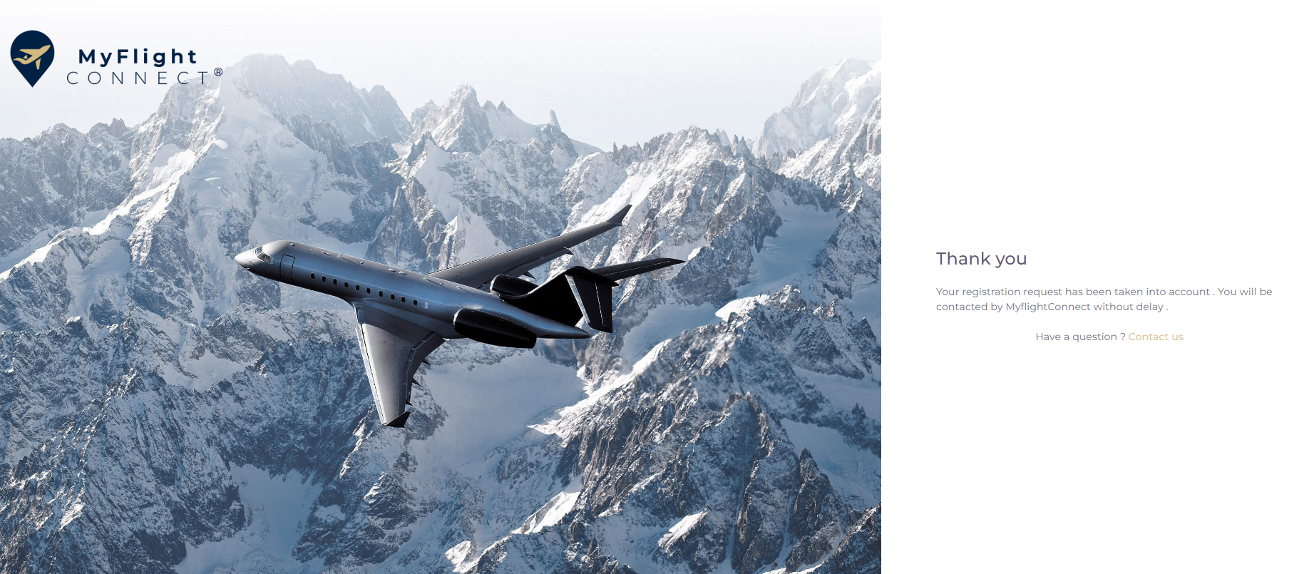 If you don’t receive this message, check your spam e-mails and flag sales@myflightconnect.com to be kept out of spam.