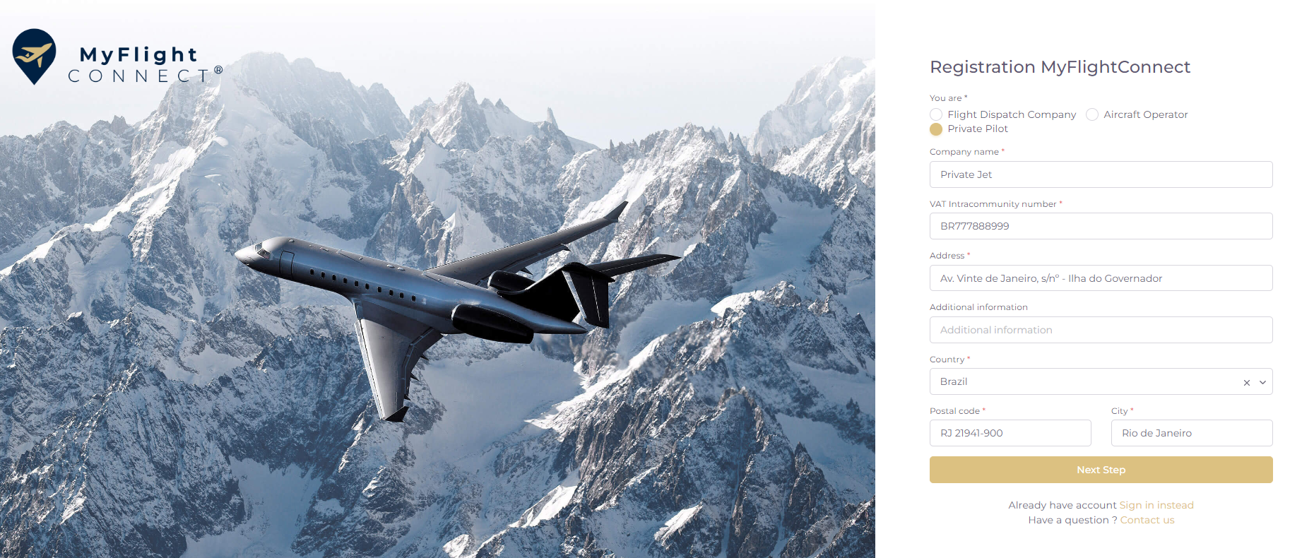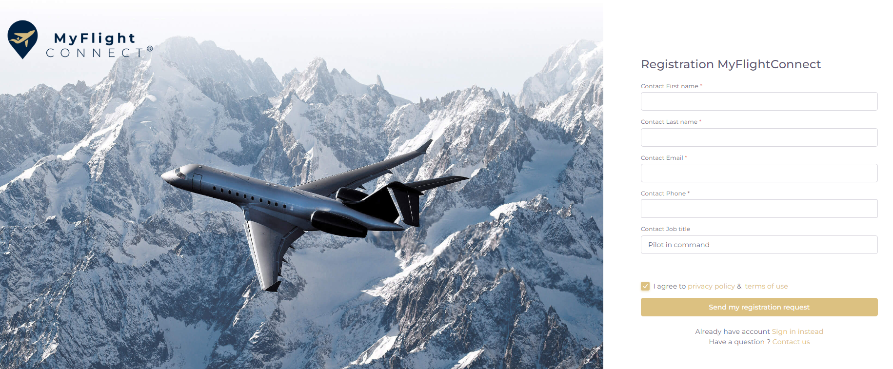 To start, fill the “Request to join” form: https://app.myflightconnect.com/register